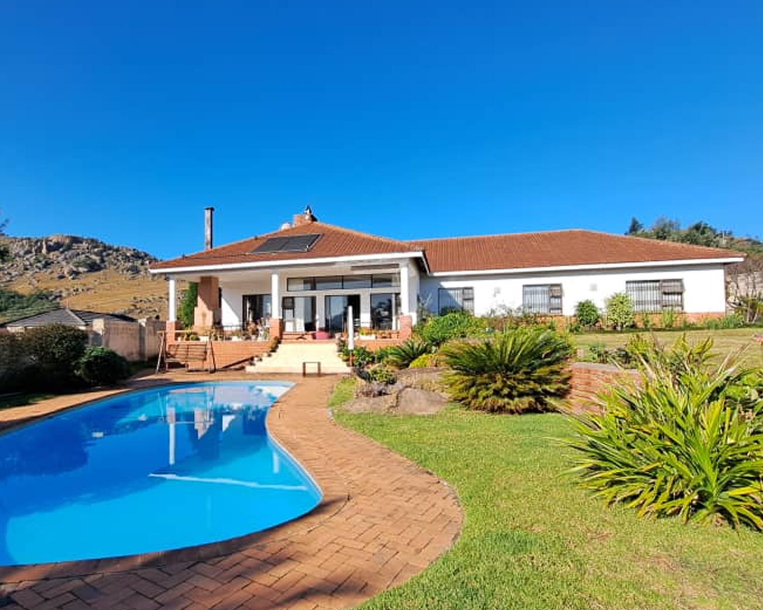 House for Sale - Mountain Drive. A lovely four bedroom house with master en-suit, open plan fitted kitchen, pantry, laundry, scullery, study,guest toilet and double garage as well as a swimming pool, braai area. Other features includea borehole, pump house, water tank. This property